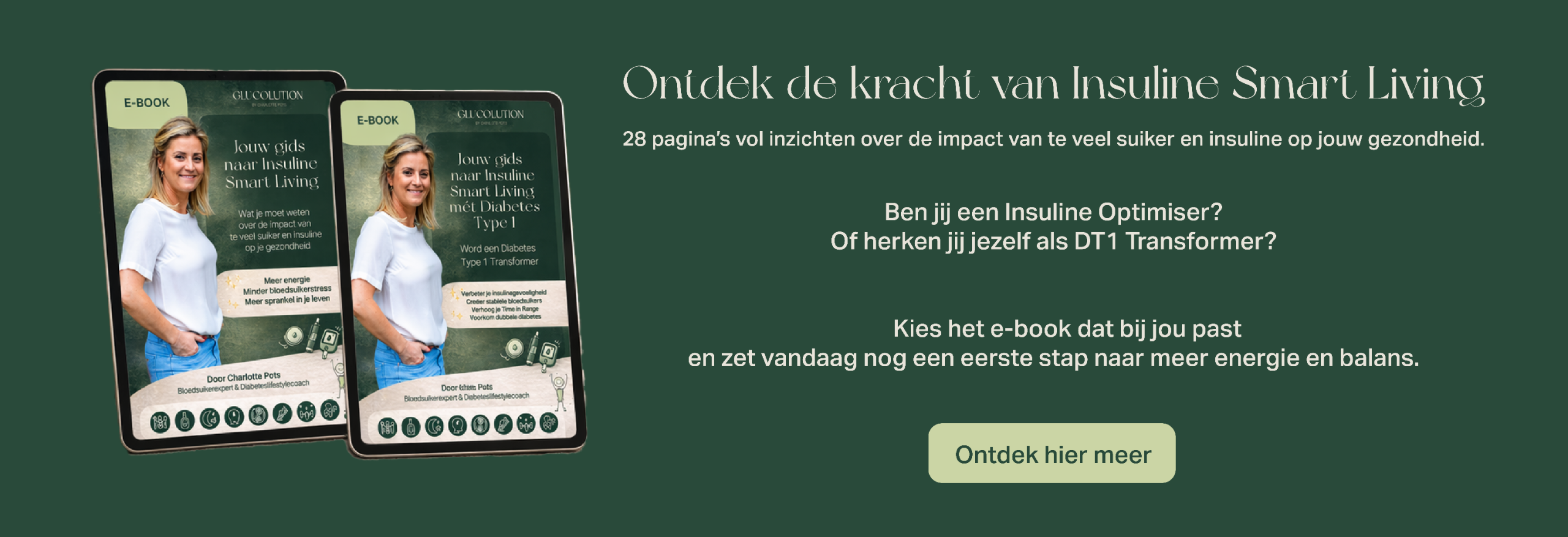 Voor iedereen met diabetes type 1 of LADA en ouders van kinderen met type 1. Je bent afhankelijk van insuline en wil meer grip, minder schommelingen én dubbele diabetes voorkomen.